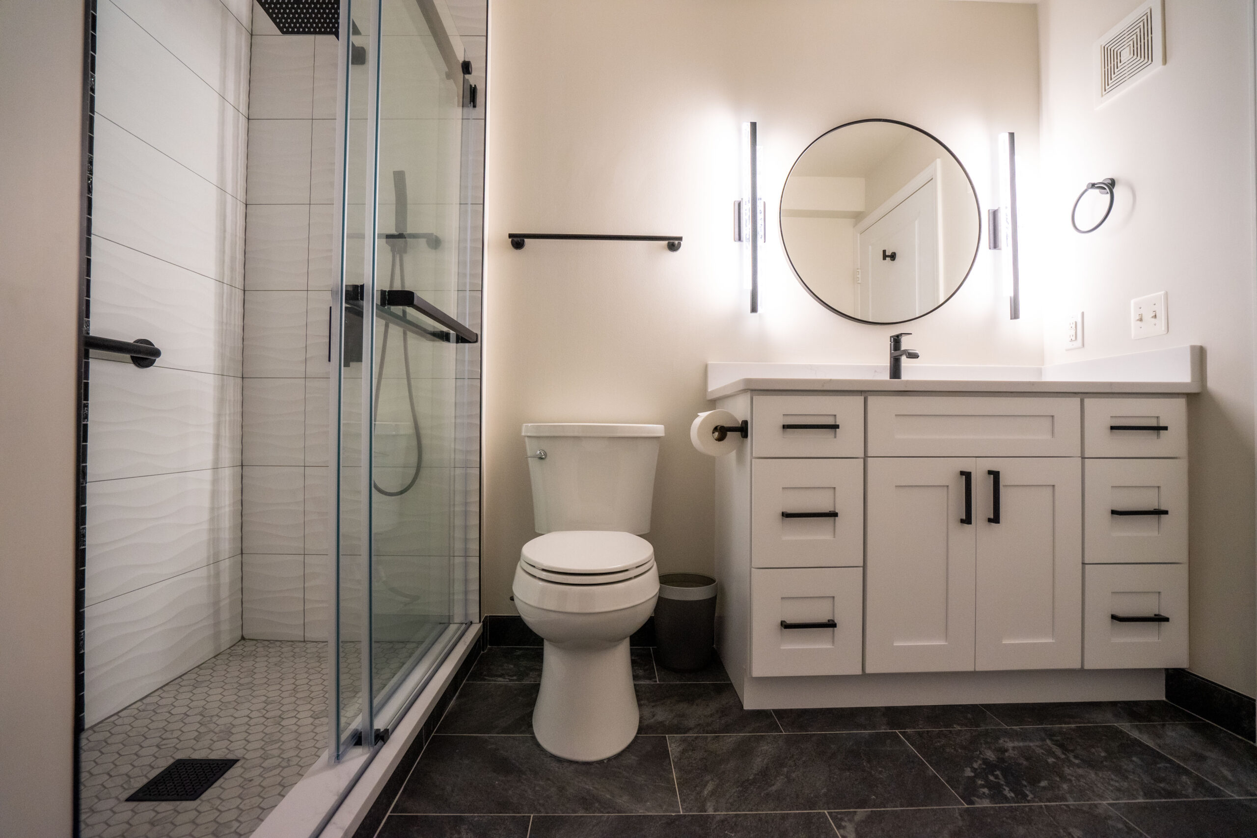 The homeowners wanted to update an outdated powder room, transforming it into a modern, functional, and stylish full bathroom. The existing bathtub and shower setup was cramped and uninspiring, lacking both accessibility and aesthetic appeal.