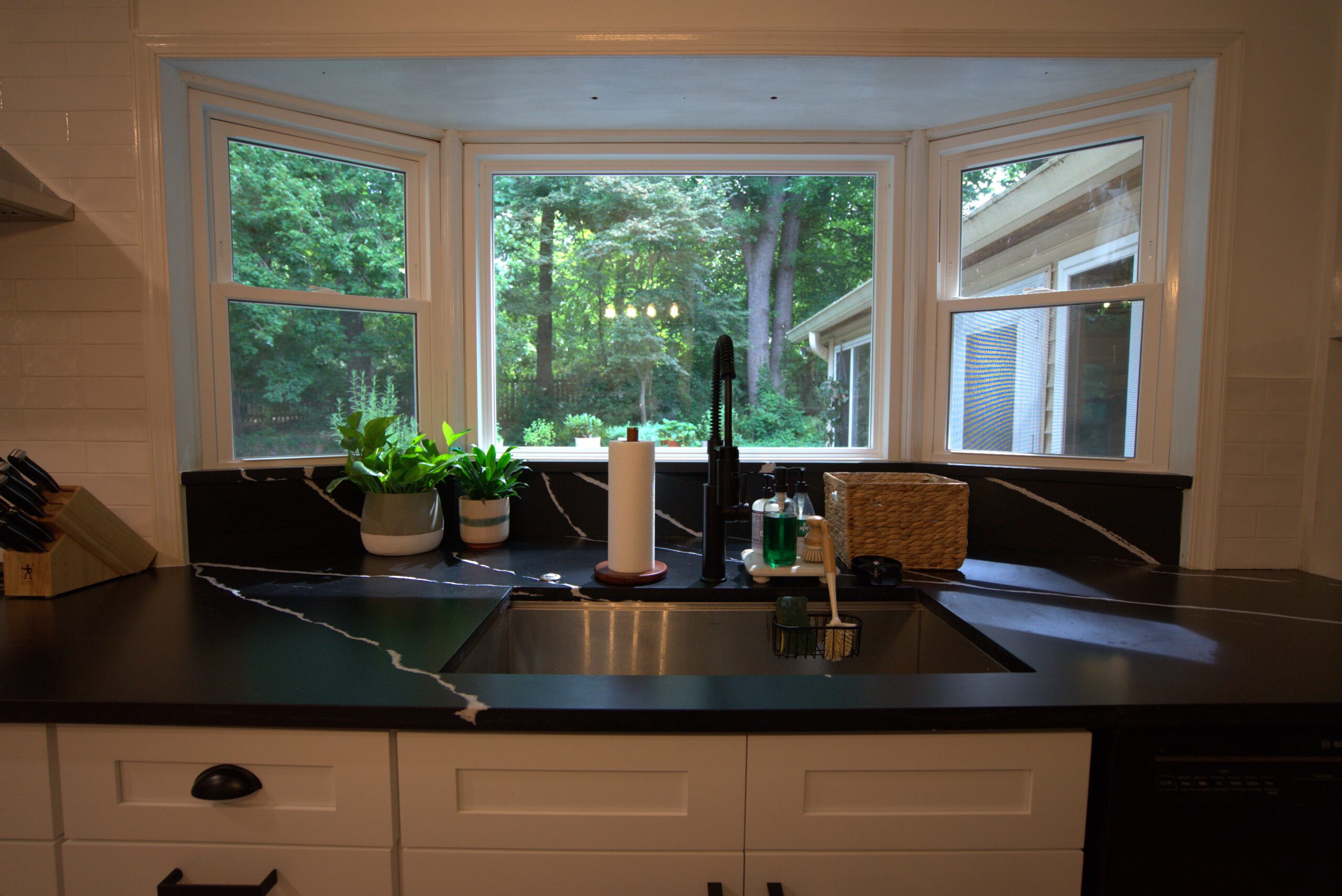 This kitchen went from outdated to sleek and modern with a stunning transformation. We replaced the old brown cabinets with crisp white shaker-style cabinetry, instantly brightening up the space. To add contrast and a contemporary touch, we installed durable black quartz countertops, offering both style and longevity. The combination of white and black creates a timeless, elegant look while making the kitchen feel fresh and inviting. A perfect blend of modern aesthetics and everyday functionality!